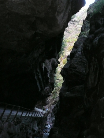 Het was een zeer koude nacht in de bergen van Beuil. Gelukkig schijnt als we wakker worden de zon en is er geen wolk te zien. Na het ontbijt rijden we richting de gorges de Cian, ook wel de Colorado Nicois genoemd, de Colorado van Nice. De borden waarschuwen al dat als je te lang, hoog of zwaar bent, je deze weg niet mag rijden. Wij wel! We dalen langzaam de kloof in. De kleuren roze, rood en paars stijgen steeds verder boven ons uit. Soms is de kloof zo smal dat je alleen een klein streepje licht ziet. En soms zijn de kliffen zo hoog dat je vanuit de auto de blauwe lucht niet meer waarneemt. Indrukwekkend en spectaculair! Een aanrader. Op sommige plaatsen zijn nu tunnels. Na elke tunnel is een parkeerstrook. Vanaf daar kun je over de oude weg door de kloof lopen. Deze is pas echt smal en bochtig. Daar hadden wij niet opgepast. Op sommige plekken is de weg weggeslagen. De daders, grote rode blokken, liggen er naast.